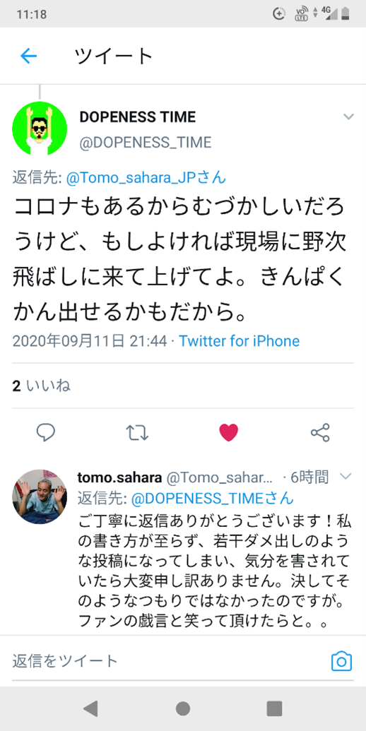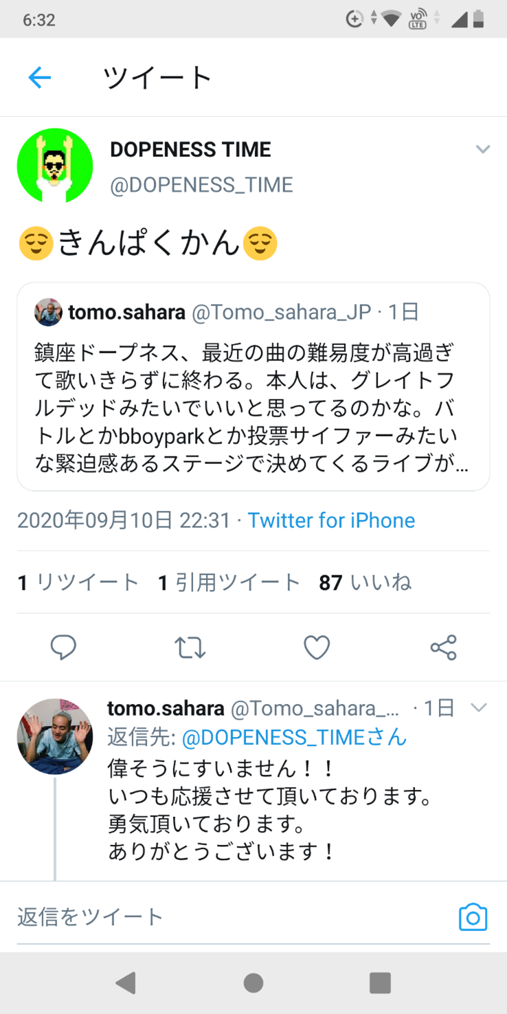 2番目に多かったリアクションはもはやアンダーグラウンドではくくれない鎮座ドープネスのような有名人が私のツイートに反応したことへの驚きだった。「すごーい!」みたいな。