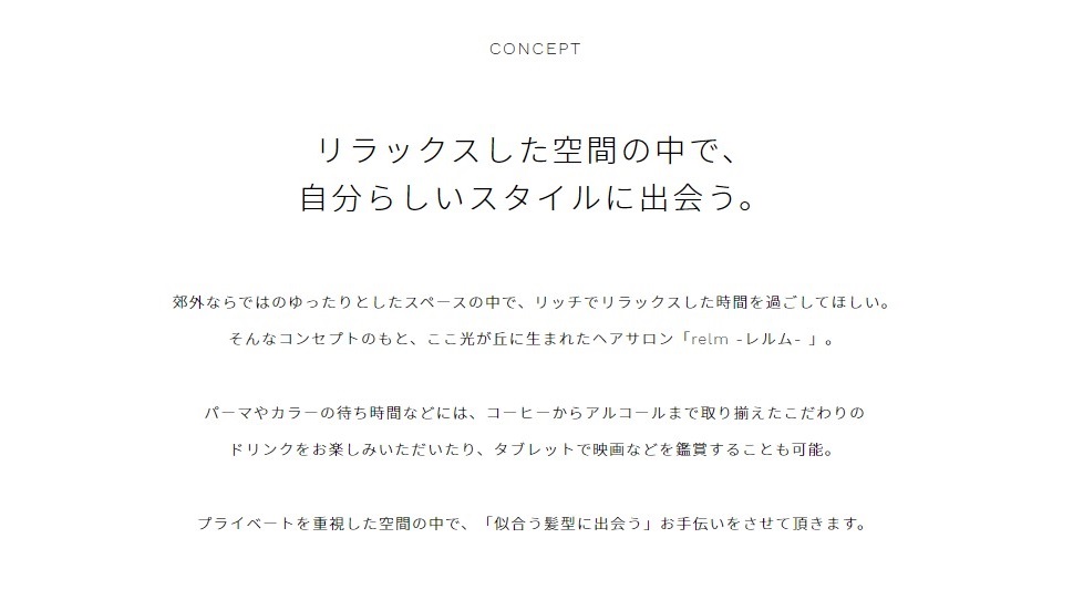 2020年7月に新たにオープンした美容室「relm」のWEBサイト制作を担当。 透明感のある空間を、そのままに感じてもらえるデザインに。新規オープンという事もありスタッフをより理解してもらうため、人となりがわかるような演出を意識しました。